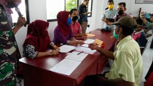 Masyarakat Penerima BLT Desa Sepempang, sedang mendengarkan arahan dari Camat