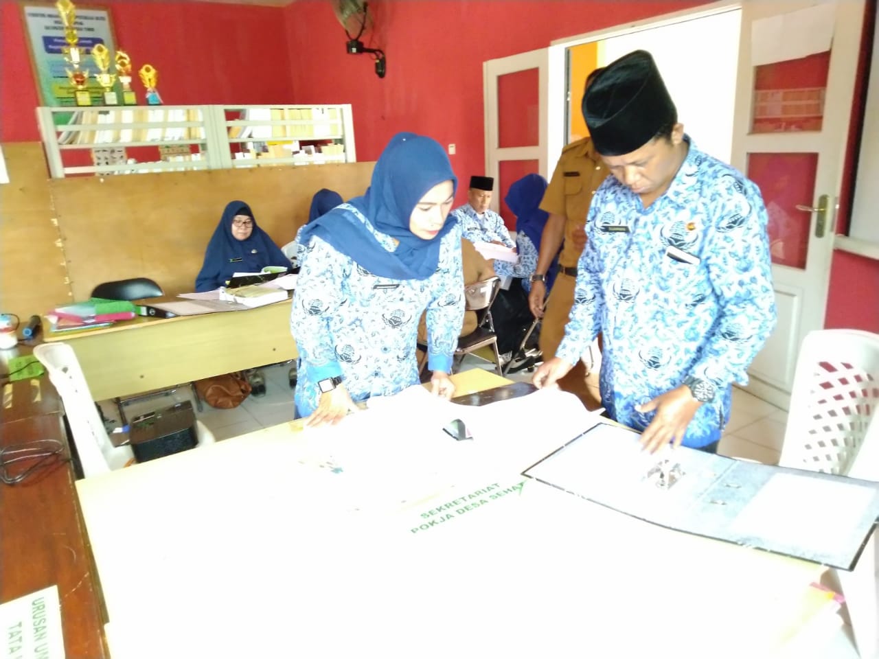 Setelah materi Camat selesai, Tim langsung bekerja dengan mengumpulkan dan menanayakan para Aparatur Desa yang sudah siap dengan laporannya, sesuai dengan tugas dan tanggung jawab pada masing-masing Seksi, serta memberikan bimbingan jika terdapat hal-hal yang dianggap kurang dalam sistem Penatausahaan Adminstrasi Keuangan maupun Administrasi Perkantoran lainnya.