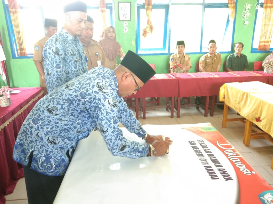 Usai upacara bendera, seluruh undangan yang hadir, majelis guru dan beberapa perwakilan dari siswa, menanda tangani Deklarasi Sekolah Ramah Anak, dan pembukaan papan selubung Sekolah Ramah Anak SD Negeri 011 Puak Kecamatan Bunguran Timur, oleh Camat Bunguran Timur, dan disaksikan oleh seluruh undangan yang hadir.