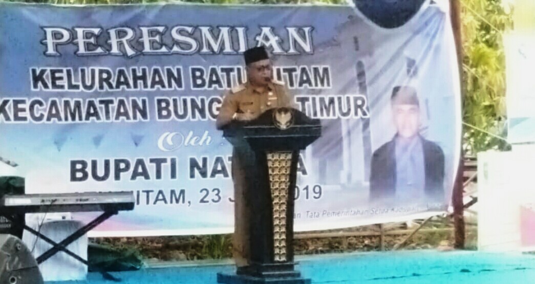 Sementara itu Bupati Natuna, Drs. H. Abdul Hamid Rizal dalam sambutannya mengaskan bahwa, pembentukan Kelurahan Batu Hitam, hasil Pemekaran wilayah Kelurahan Ranai dan Kelurahan Bandarsyah, semata-mata hanya untuk memperpendek rentang kendali, dalam upaya pemerintah memberikan pelayanan kepada masyarakat secara maksimal. Hingga kegiatan pembangunan di Kabupaten Natuna, khsusnya di Kecamatan Bunguran Timur, diharapkan akan lebih cepat dan berkembang.