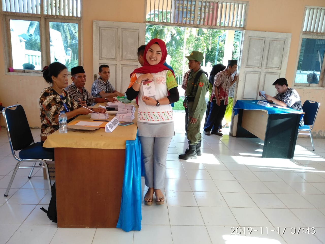 Pemilih pertama pada TPS 1, Pilkades Batu Gajah sedang akan memberikan hak suaranya