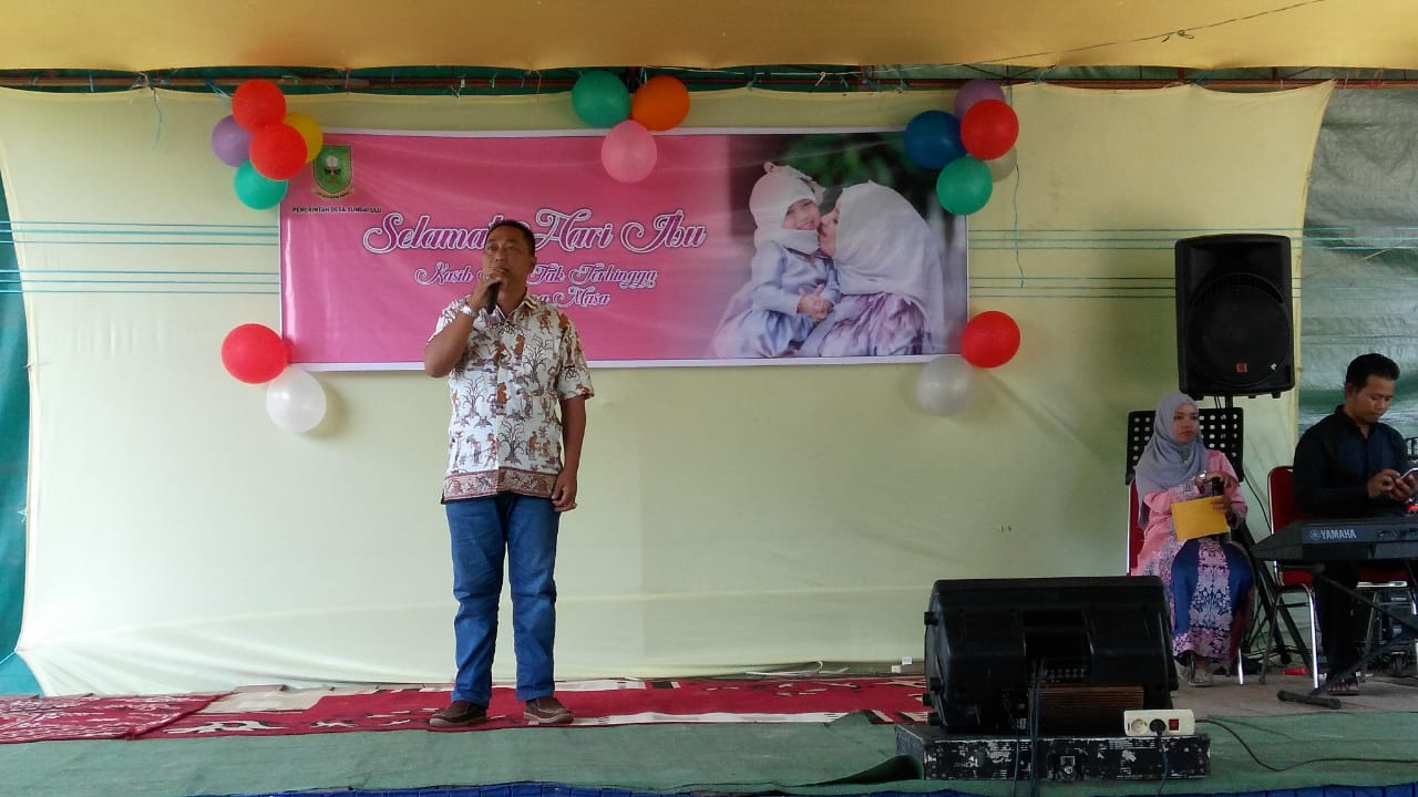 Kades Sungai Ulu Hermanto sedang memberikan sambutan Hari Ibu ke 91 di desanya