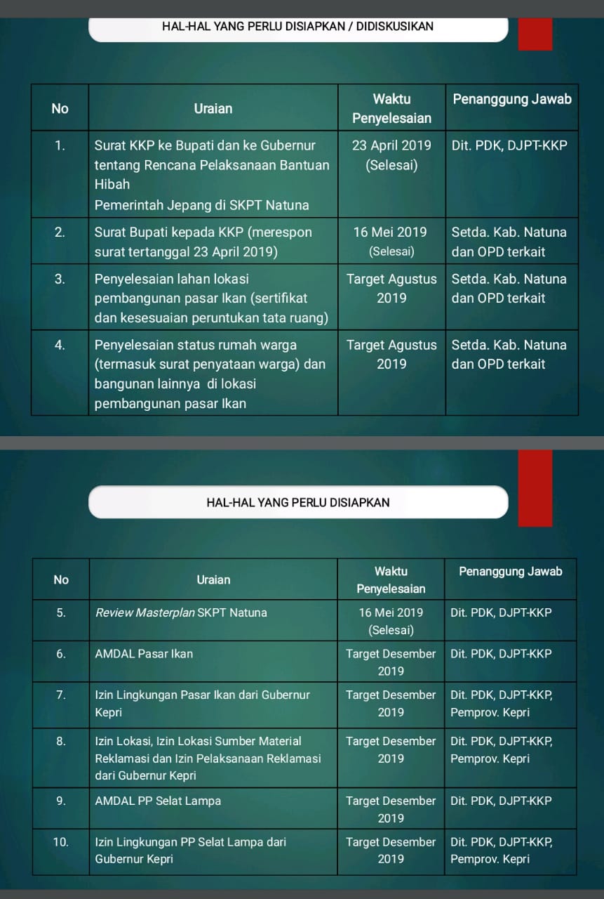 Kemudian lebih dari pada itu, Kementerian KKP juga sudah melayangkan surat kepada Gebernur Kepulauan Riau dan Bupati Natuna tentang rencana Pelaksanaan Bantuan Hibah pemerintah Jepang tersebut.