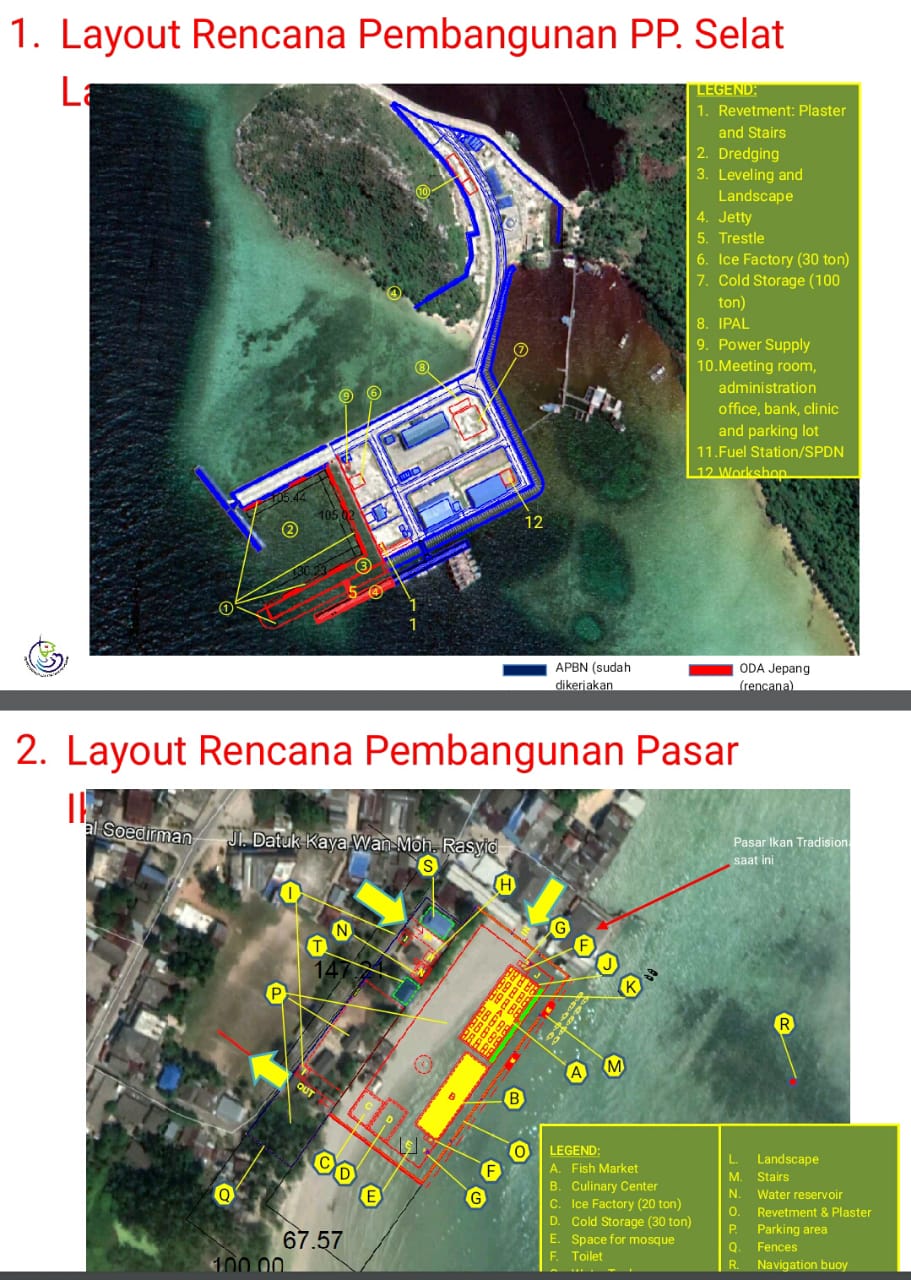 “Kami juga ingin memastikan bahwa Pemerintah Kabupaten Natuna mendukung penuh upaya pembangunan Pasara Ikan Moderen melalui dana bantuan hibah dari Pemerintah Jepang ini. Buktinya Pemerintah Kabupaten Natuna telah menyiakan anggaran dalam APBD Perubahan tahun 2019 sebesar 2 milyar rupiah untuk menyelesaikan kegiatan ganti rugi tanah masyarakat yang terkena dampak pembangunan. Sementara rumah warga kita sudah utus Lurah Ranai untuk melakukan negosiasi, dan kabarnya mereka bersedia untuk pindah.