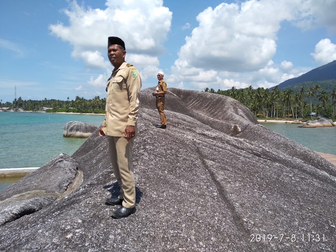 Camat Bunguran Timur H. Wan Suhardi dan Kades Sepempang M. Delan, sedang meninjau langsung kelokasi Batu Condong Desa Sepempang.