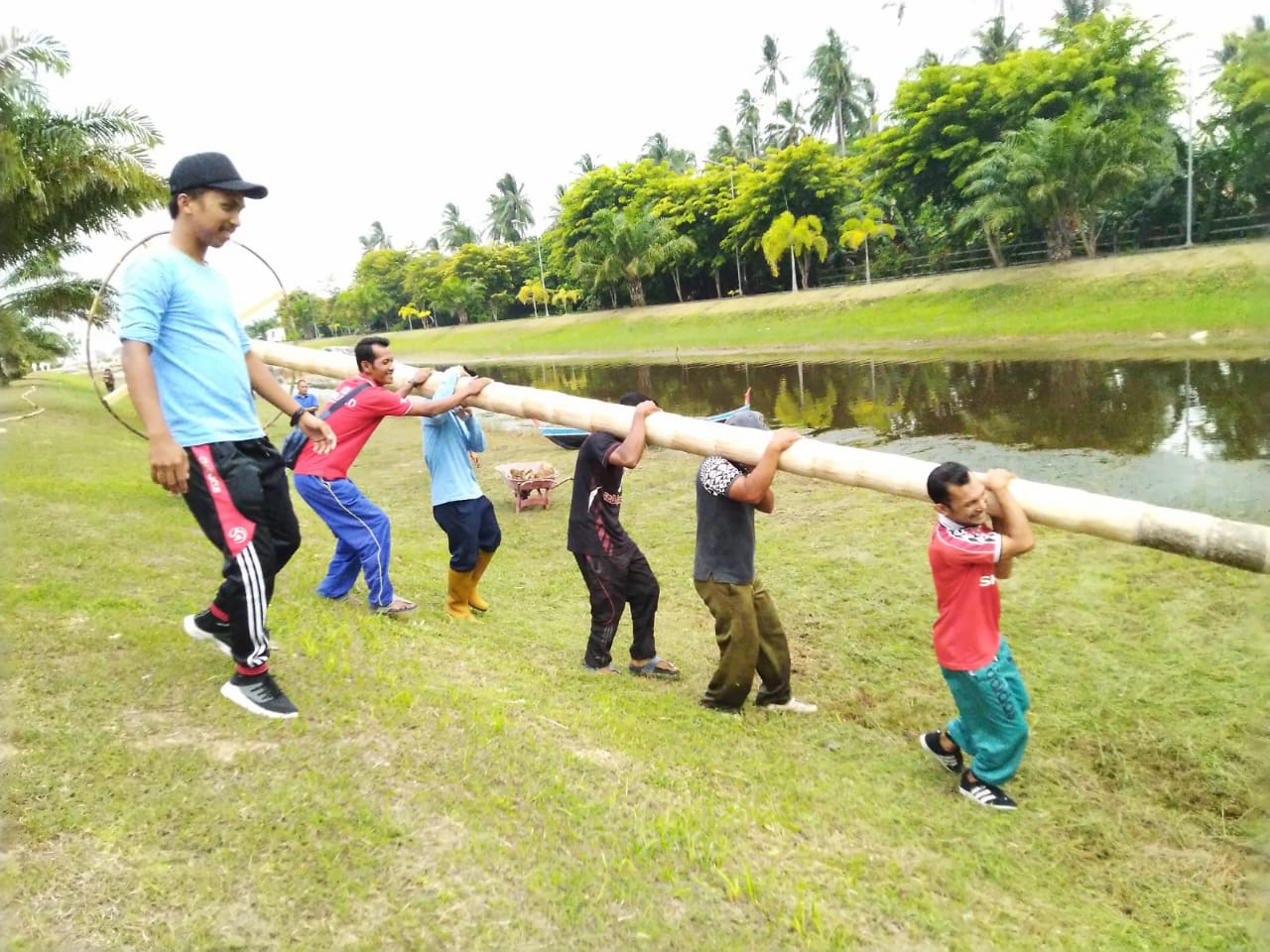 “insya’allah ada 6 jenis permainan rakyat yang akan kita gelar di sepanjang kolam dan halaman Kantor Camat. Kolek, panjat pinang dan tarik tambang di kolam, sedangkan lari goni, makan kerupuk dan lomba memindahkan tepung, akan digelar di halaman Kantor Kecamatan”, terang Wan Suhardi ketika ditemui Pewarta Kota Srindit di ruang kerjanya kemarin.