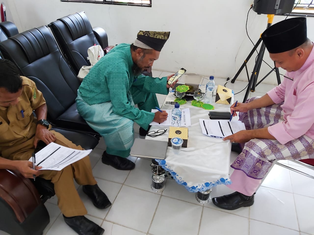 Lurah Ranai Darat Basri, Sekdes Sungai Ulu Harjo, dan PLT Kades Batu Gajah Yusriandi, sedang sibuk menjawab questioners